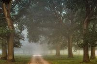 Op mistige ochtenden met de zon in de rug kan de mist er ongelooflijk schilderachtig uitzien, wat het geval was op deze zomermorgen in augustus. De kronkelige eikenbomen langs deze zandweg zagen eruit alsof ze in de Romantiek waren geschilderd.