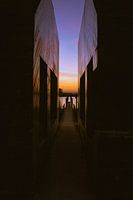 De kleuren van de zonsopkomst reflecteren mooi tegen de bunker aan. Je hebt een mooi doorkijkje naar de stijger en het water. Het is niet een symmetrisch beeld maar het scheelt niet veel. De bunker kan je vinden naast de Diefdijk bij Zijderveld naast de A2.