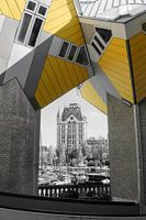 Meerdere Rotterdamse iconen in één beeld! De bekende kubuswoningen van architect Piet Blom bieden een mooie doorkijk naar de Oude Haven en het Witte Huis.