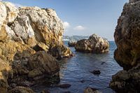 Een doorkijkje naar een klein rotseiland voor het strand van Rijana. Deze kust maakt deel uit van de Costa Tropical.