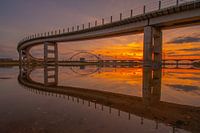 Mooi doorkijkje onder de ‘Zaligebrug’ (loopbrug) naar de nieuwe brug “De Oversteek”