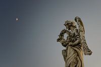 Het laatste daglicht schijnt op de beelden van de Ponte Sant'Angelo in Rome.