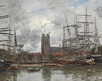 Koop Dordrecht - Gezicht op de haven, Eugène Louis Boudin als reproductie op canvas, aluminium dibond, (ingelijste) fotoprint, behang en ArtFrame, op maat geprint in Fine-Art kwaliteit.