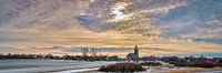 In Noord-Holland het kleine dorp Oosterland op Wieringen in de winter, met de Michaëlskerk.