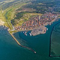 Dorp West en haven van Terschellling met het Groene Strand en duin plus bos achter het dorp