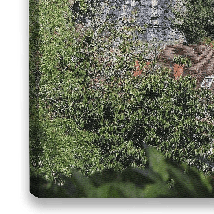 Foto van het dorp Gluges, genesteld aan de voet van de klif in het departement Lot op de grens met Corrèze.