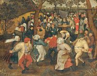 De Bruiloftsdans in de open lucht van Pieter II Brueghel is vermoedelijk een kopie naar een verloren gegaan werk van zijn vader Pieter Bruegel de Oudere. De compositie kan ook een compilatie zijn van elementen uit verscheidene bruiloftsdansen van zijn vader. Van deze Bruiloftsdans in de open lucht bestaan talrijke versies. Op de voorgrond zien we enkele dansende paren die in alle versies bijna letterlijk terug te vinden zijn. Er bestaan versies waarin de bruid meedanst. Hier zit zij achteraan in het midden voor een doek waarop een kroon is bevestigd. Nieuwsgierig kijken enkele bruiloftsgasten naar de schaal voor haar op de tafel om te zien hoeveel geld zij cadeau krijgt.