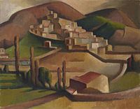 Mirmande vertegenwoordigt het onderwerp waarmee Black voor het eerst ideeën over het schilderen van het moderne landschap ondervroeg. In 'Mirmande (en omliggende heuvels)' zien we de esthetische elementen die ze zou toepassen op haar latere Australische landschappen: onuitwisbaar solide, gedreven door een dynamische, ritmische structuur, en gekleurd in aardse sombere tinten. Black paste deze kenmerken toe om haar landschappen een gevoel van sombere monumentaliteit te geven en de onderliggende en eeuwig vitale krachten van de natuur op te roepen.