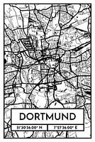 Dortmund - de metropool in de pot als abstracte stadsplattegrond. Perfect voor echte Dortmunders* en iedereen die van deze stad houdt - ook als stijlvol cadeau-idee! Kaart: © OpenStreetMap medewerkers
