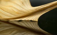 Vaak wordt je verrast door de schoonheid van doodgewone dingen. Neem dit verdorde blad. Zulke mooie kleuren en details. En met een zwarte ondergrond en een spiegeling erbij, is het een stukje kunst op zich.