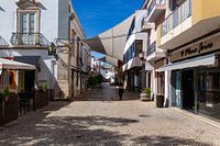 De prachtige voetgangerszone van de oude stad Faro na het carnaval.