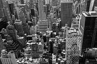 Uniek uitzicht op de skyline en de daken van downtown Manhattan in New York City vanaf het Rockefeller Center. Zwart-wit fotografie.