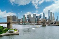 Downtown Manhattan met de Brooklyn bridge op een zonnige dag in New York