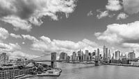 Downtown Manhattan met de Brooklyn bridge op een zonnige dag in New York zwart wit