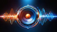 Boxen met digitale muziek en golfvormen