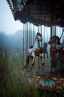 Een nostalgische carrousel met prachtige, filigrane paarden schommelt zachtjes in de schemering. De glinsterende kleuren en de dromerige achtergrond geven het motief een magische sfeer. Perfect voor de woonkamer, waar het verhalen uit de kindertijd vertelt en herinneringen oproept. Een blikvanger die uitnodigt om te dromen.
