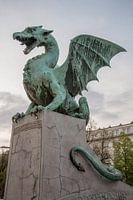 Draak op de drakenbrug in centrum Lubliana, Slovenie