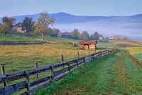 Een heerlijke landschapsfoto op een kille herfstochtend genomen bij het dorpje Dragatus in de Bela Krajina van Slovenië.