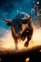 In vurige pracht stormt een majestueuze stier voorwaarts, gehuld in dynamische energiestromen en flitsende koersdiagrammen. Zijn krachtige aanwezigheid symboliseert kracht en vastberadenheid, perfect voor een kantoor waar motivatie en vooruitgang thuis zijn. Deze indrukwekkende vertoning trekt alle ogen en inspireert tot grote daden.