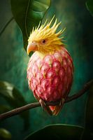Dit opvallende kunstwerk vangt de verbeelding met een surrealistisch vogeltje dat een kruising is tussen een drakenfruit en een papegaai. De vleugels hebben het robuuste, exotische patroon van een drakenfruit, met felle tinten roze en groen die contrasteren met het subtiele patroon van kleine zwarte “zaadjes” op het lichaam. Het…