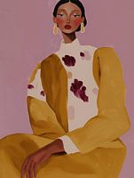 Ze kijkt alsof ze net hoorde dat cappuccino met havermelk wéér een euro extra kost. Dit kunstwerk is modieus, stijlvol en een tikje dramatisch – precies zoals we het willen. Perfect voor iedereen die weet hoe je main character energy aan de muur hangt.