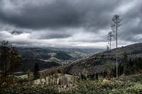 Laat u meenemen naar de indrukwekkende dieptes van de natuur met deze sfeervolle foto van een berglandschap onder een dramatische hemel. De donkere wolken die over de bergen hangen, creëren een mystieke sfeer, terwijl de afgelegen vallei beneden het beeld compleet maakt met haar vredige, natuurlijke uitstraling. Dit kunstwerk vangt de…