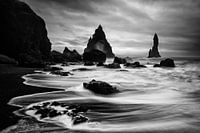 Bij het plaatsje Vik in IJsland is het zand compleet zwart. Deze iconische rotsen zijn veelvuldig gefotografeerd en als je er bent weet je ook waarom. Hier heb ik door gebruik te maken van een langere sluitertijd beweging in het water gecreëerd dat mooi afsteekt tegen het zwarte zand.
