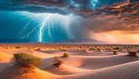 Dramatisch zicht van een zware onweersbui die door de woestijn trekt