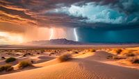 Dramatisch zicht van een zware onweersbui die door de woestijn trekt