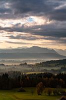 dramatische sfeer over de Allgäuer uitlopers van de Alpen, Grünten, Hochvogel, Tretachspitze, Großer Daumen