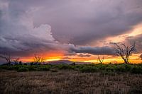 Uiteindelijk ben ik erin geslaagd precies deze unieke sfeer van wilde dieren vast te leggen. Hier ziet u een landschapsfoto bij zonsondergang van Tsavo East National Park.