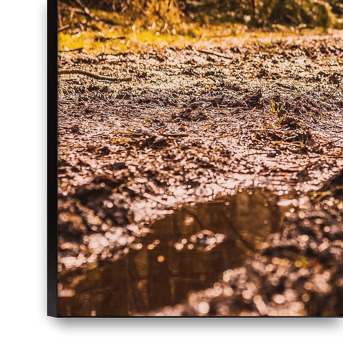 Een zeer drassig bospad na vele dagen regen. Gelukkig schijnt vandaag de zon waardoor dit mooie plaatje kon worden vastgelegd.