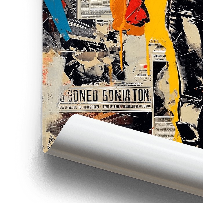 Een intrigerend mixed media portret waarin zachtheid en urban edge elkaar ontmoeten. De vrouw in dit werk kijkt dromerig weg, alsof ze zweeft tussen realiteit en verbeelding. Rondom haar hoofd ontvouwt zich een collage van grafische elementen, typografie, verfstructuren en kleuraccenten die samen een visueel verhaal vormen –…