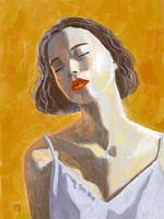 Dit portret maakt deel uit van 3 schilderijen die een eenheid vormen qua kleur. Schilderijen met een moderne uitstraling, mooi om bijvoorbeeld op acrylglas te printen.