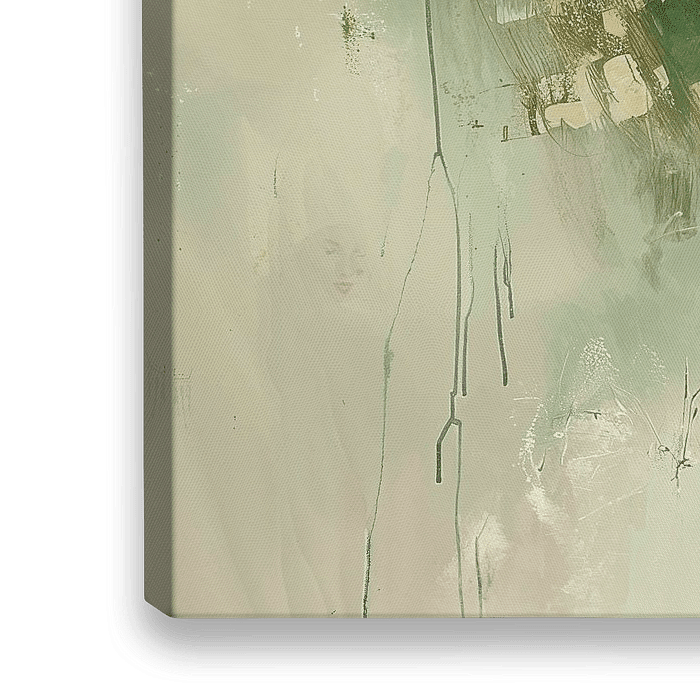 Dreaming in Color - Dit vrouwen schilderij laat een suggestieve, bijna etherische impressie van een staande vrouw zien, kijkend naar de linkerzijde van het doek. Ze draagt wat lijkt op een donkere hoed en een vloeiende, groenachtige jurk. De omringende penseelstreken, rijk aan textuur en laagjes, creëren een dynamische en kleurrijke omgeving. De achtergrond en de figuur lijken te versmelten door de zachte contouren en de harmonieuze overgang van kleuren. De dominante kleuren groen, blauw en wit worden verlevendigd met spatten van roze, oranje en geel die als bloemen of lichtvlekken aanvoelen. De ruime inzet van pasteuze verftechniek versterkt de tastbare sensatie van beweging en natuurlijk licht.