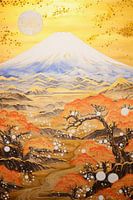"Dreaming of Mount Fuji" is een digitaal schilderij van een Japans landschap met mount Fuji in de achtergrond. Het kleurenpalet is om de kleur goud heen gebouwd met subtiele oranje, bruine en grijze elementen. Je blik wordt door het landschap getrokken naar de witte besneeuwde top van mount Fuji. Het werk geeft een warme elegante uitstraling aan uw interieur!