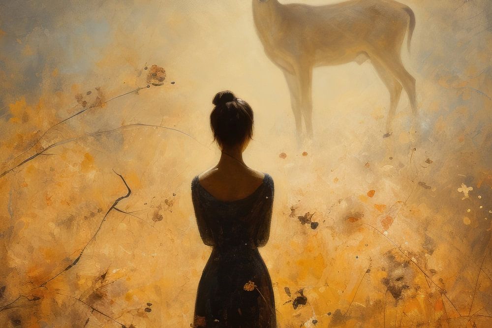 Dreaming of an Indian summer. Portret van een jonge vrouw in een prachtig landschap in warme kleuren. Een echte blikvanger voor je muur.