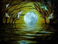 Dreamland, collage van zijn eigen foto's en originele canvas beeld, maan, volle maan, magisch koninkrijk, magische land, planeet, kosmos, heelal, astrologie, meditatief, magisch, legenden, mythen, sprookjesland, sprookjesland, Digitalart, sprookjes, sprookjes, witte maan, mystiek, vlinders, Scene kinderen, kinderdagverblijf, kinderen, dromen, fantasie, collage