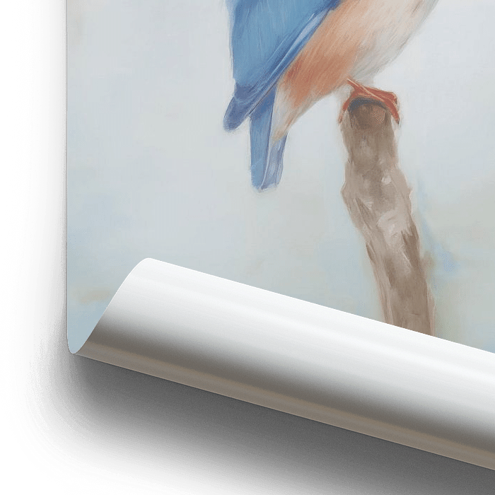 Een kleurrijk digitaal schilderij van een ijsvogeltje droomend op een tak. Het werk geeft een dromerige en klassieke uitstraling aan uw interieur!