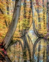 Dromerige reflecties van een stel kromme beuken in de buurt van het landgoed Twickl