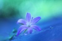 Een paarse bloem met waterdruppels tegen een bokeh achtergrond.