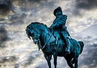 Een standbeeld van een ruiter waar de dramatiek van afdruipt