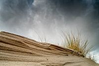 Donkere wolken pakken zich samen boven de duinen