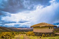 Koop dit landschapskunstwerk Dreigende lucht boven traditionele ronde hut op de hoogvlakte van het Andesgebergte, Peru van Rietje Bulthuis op canvas, aluminium dibond, (ingelijste) fotoprint, behang en ArtFrame, op maat geprint in Fine-Art kwaliteit.