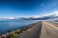 Dreigende wolken pakken zich samen boven de Markerwaarddijk ook wel de Enkhuizerdijk genoemd kijkend richting Lelystad.