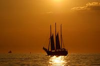 Der Schoner Pippilotta fährt der untergehenden Sonne entgegen.