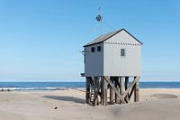 Het historische Drenkelingenhuisje op het Noordzeestrand van het eiland Terschelling in Nederland. In vroeger dagen gebruikt als eerste onderkomen voor drenkelingen.