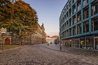 Mengeling van oude en nieuwe architectuur in de Dresdener Altstadt (Saksen, Duitsland).