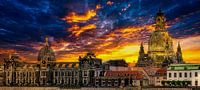 Dresden vandaag - Een uitzicht vanaf de Augustusbrug op het Brühl Terras, ook bekend als het balkon van Europa, met de Academie voor Schone Kunsten (Hochschule für Bildende Künste Dresden) en de Frauenkirche, toont een deel van de mooie oude stad Dresden aan de Elbe. Naast de schoonheid van deze historische gebouwen krijgt dit werk van Max Steinwald zijn bijzondere charme door het spel van sterke kleuren en contrasten en de geaccentueerde zonsondergangstemming.