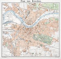 Plattegrond of wegenkaart van de stad Dresden in Saksen, Duitsland, destijds het Duitse Keizerrijk